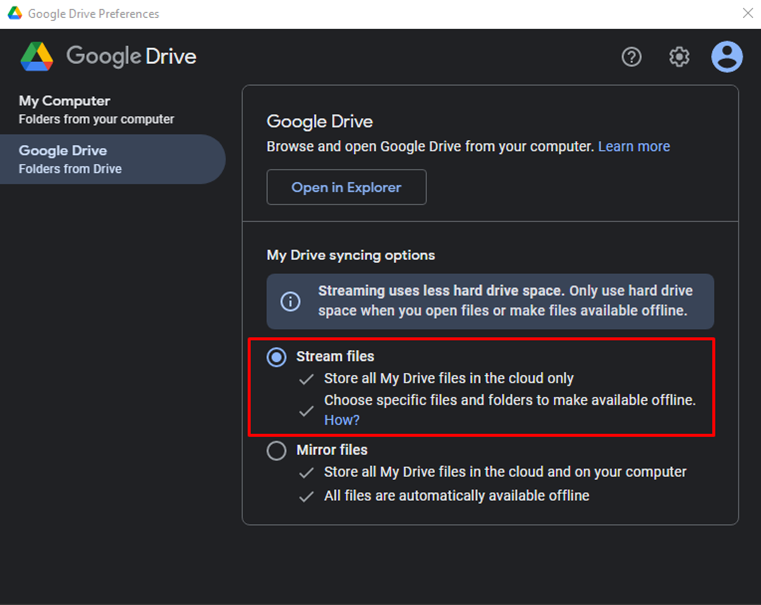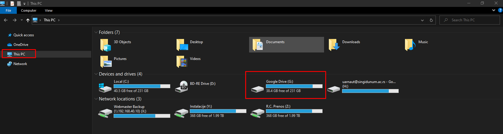 Da biste mogli da pristupite Vašem disku potrebno je da otvorite My Computer (This PC) gde ćete pronaći particiju pod nazivom Google Drive (G:) – pogledajte sliku ispod.