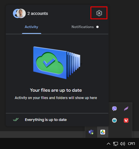 Pre nego što pristupite samom disku, potrebno je da dovršite podešavanja pristupa nalogu. U taskbar-u videćete ikonicu koja je strelica na gore (donji desni ugao).